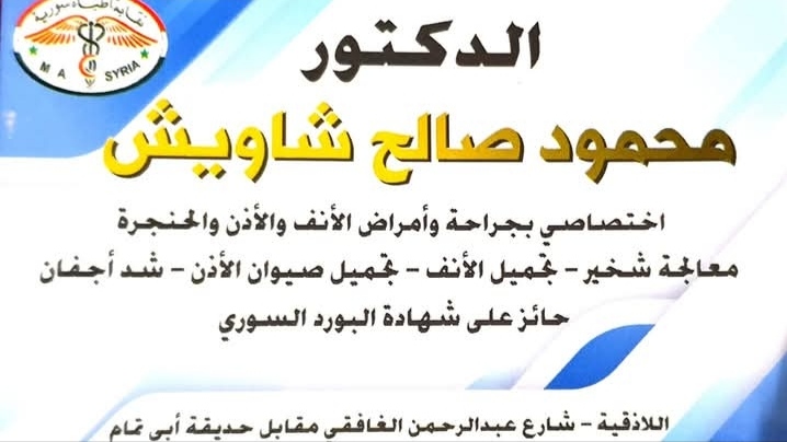 ** الدكتور محمود صالح شاويش: أختصاصي بجراحة وأمراض الأنف والأذن والحنجرة **