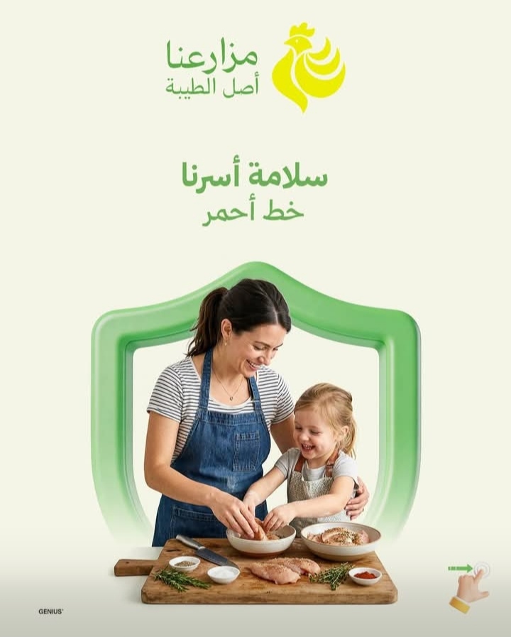 _ ومن هنا، نهتم بكل تفصيل: من التربية إلى التغذية، ليصل إلى بيوتكم دجاجٌ نظيف، طازج، وآمن بكل ثقة