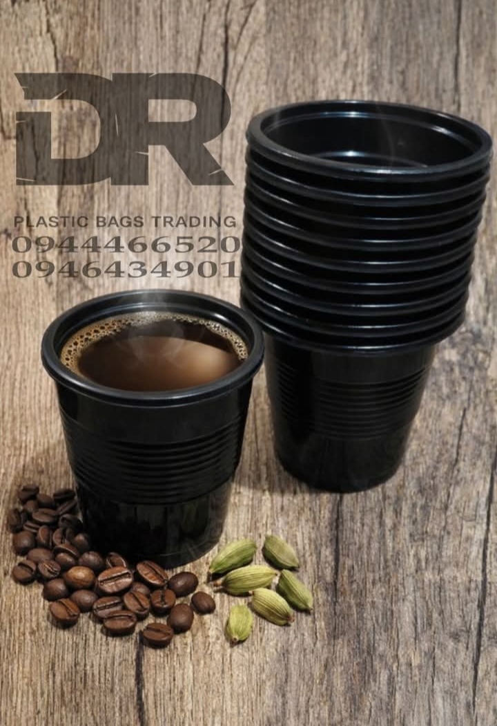 _ كاسات قهوة بلاستيك سوداء، شكلها أنيق، استخدامها عملي، وتكمل أي ضيافة.