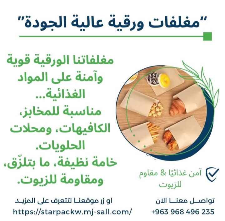 ★ تغليف ستار باك جاهزين نوفر لك أفضل خامات أكياس الورق للمطاعم والمقاهي: من رولات ورقية وسندويش وأكياس بجميع المقاسات من الورق الأوروبي الفاخر بسمك 40 غرام/متر