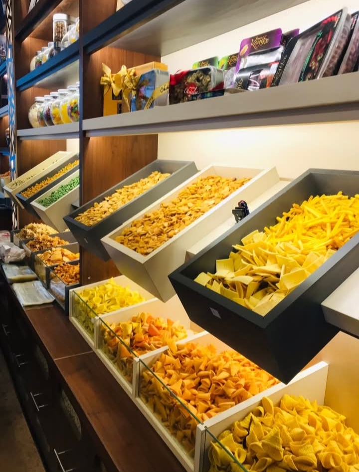 تشمل حلويات فلاكسي جوز الهند الخفيفة. كما تقدم كيك فاخر وراحة تركية بجودة ممتازة. بالإضافة إلى فال الأصلي والشوكولاتة الفاخرة. وكذلك مقرمشات أمريكية أصلية بنكهات طبيعية.