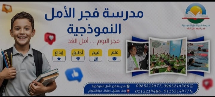 https://dalelsyria.com/ad/%d9%85%d8%af%d8%b1%d8%b3%d8%a9-%d9%81%d8%ac%d8%b1-%d8%a7%d9%84%d8%a3%d9%85%d9%84-%d8%a7%d9%84%d9%86%d9%85%d9%88%d8%b0%d8%ac%d9%8a%d8%a9/