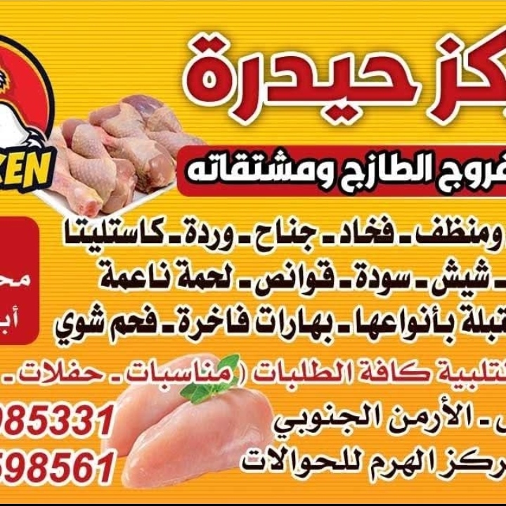 ** مركز حيدرة لبيع الفروج الطازج ومشتقاته: ثقتكم شعارنا**