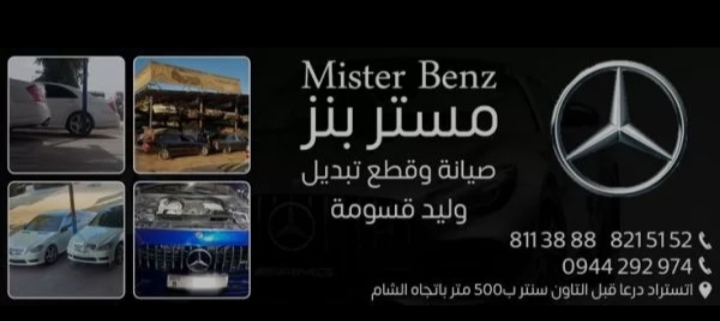 “مستر بنز” * الاختصاص: قطع سيارات مرسيدس هاتف: 0118113888- 0944292974 العنوان: دمشق، اتستراد درعا، قبل التاون شنتر ب 500متر باتجاه الشام
