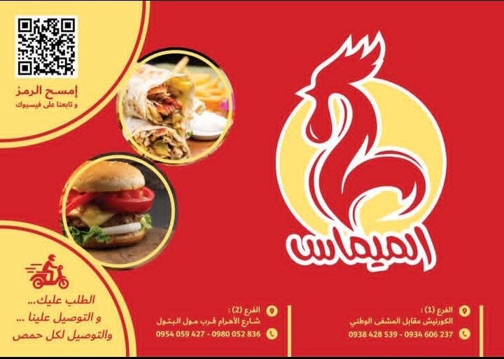 أهلاً بكم في **مطعم الميماس**،حيث نعيد تعريف الوجبات السريعة بأصالة الطعم وسرعة الخدمة. نحن لا نقدم مجرد طعام، بل نقدم تجربة مختلفة تجمع بين الجودة والكرم، لأننا نؤمن بأن الضيافة أصلٌ وأسلوب حياة.